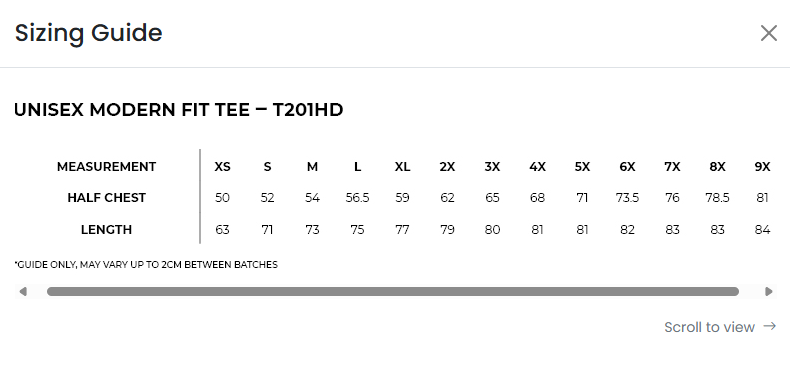 • XS, Small, Medium, Large, X Large, 2X Large, 3X Large, 4X Large, 5X Large, 6X Large, 7XL